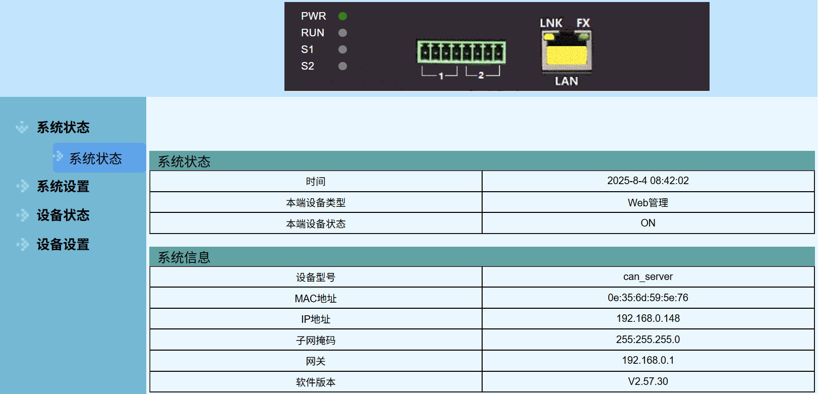 業(yè)務(wù)端口描述 | 1個(gè)CAN接線端子接口,1路串口,1路百兆以太網(wǎng)電口 |