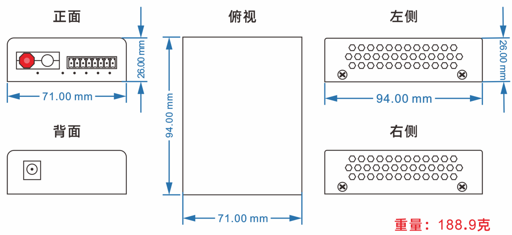 重量 | 外置電源/內(nèi)置電源:0.190Kg/臺 0.399kg/臺 |