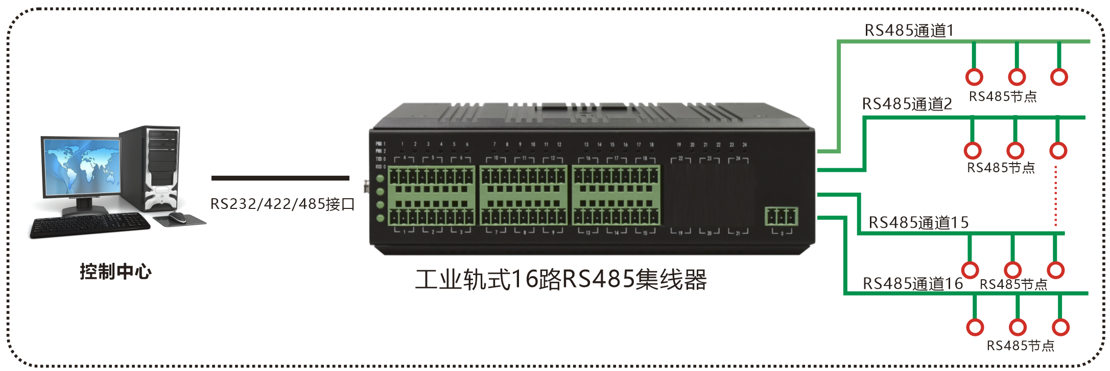 業(yè)務端口描述 | 16路RS485通道,1路上聯(lián)RS232/422/485(可選)接口 |