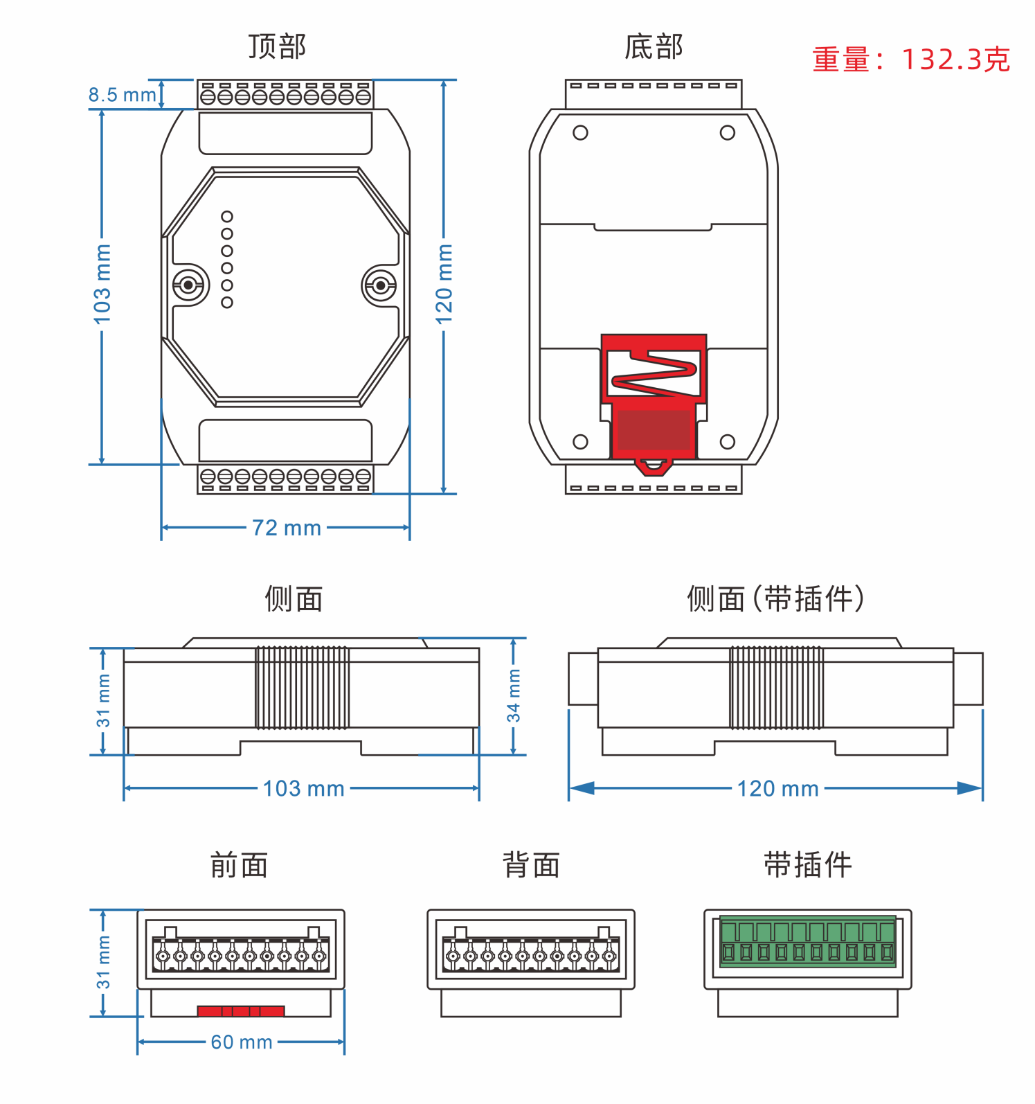 電源輸入DC9-50V ,功耗<1W 過載保護:支持;反接保護:支持; 接入端子:2芯5.08mm間距端子 |