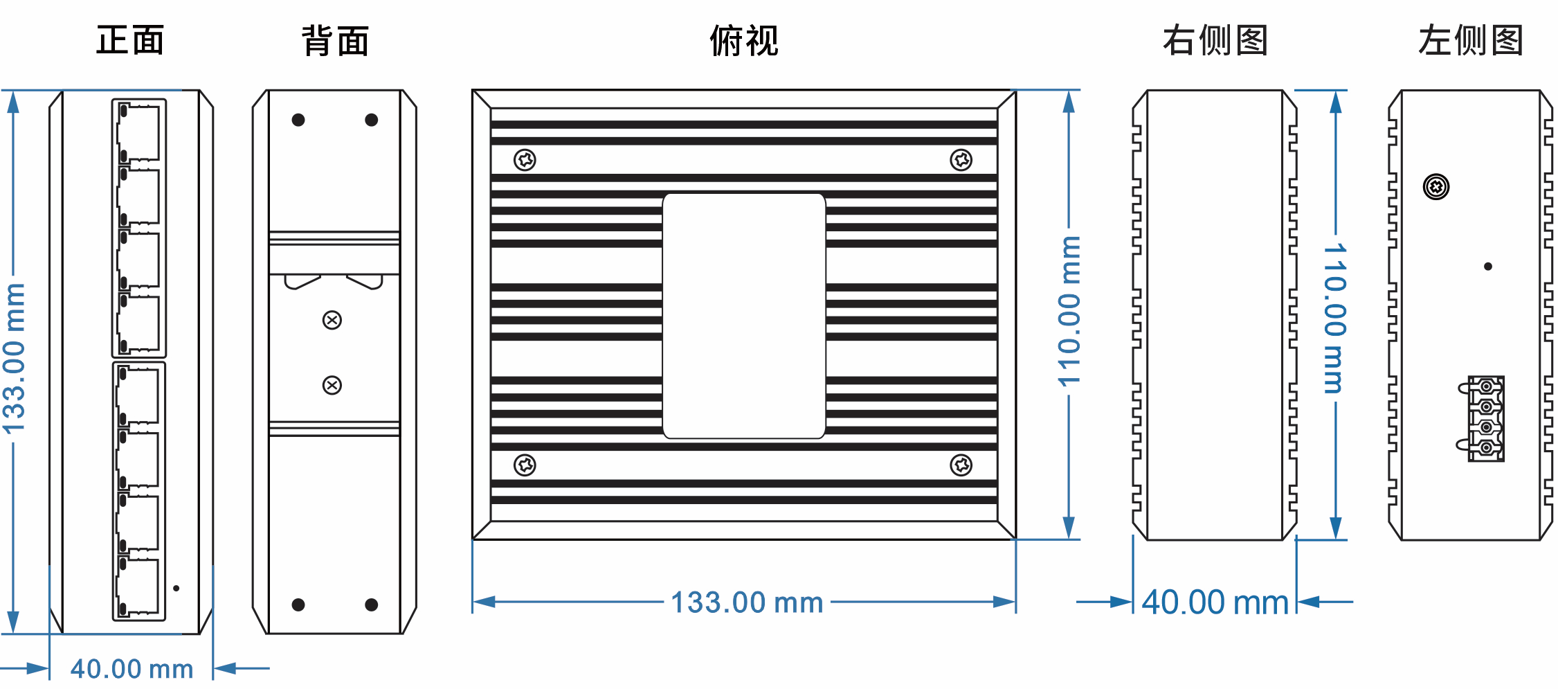 外殼:IP40防護等級,鋁合金材質(zhì)